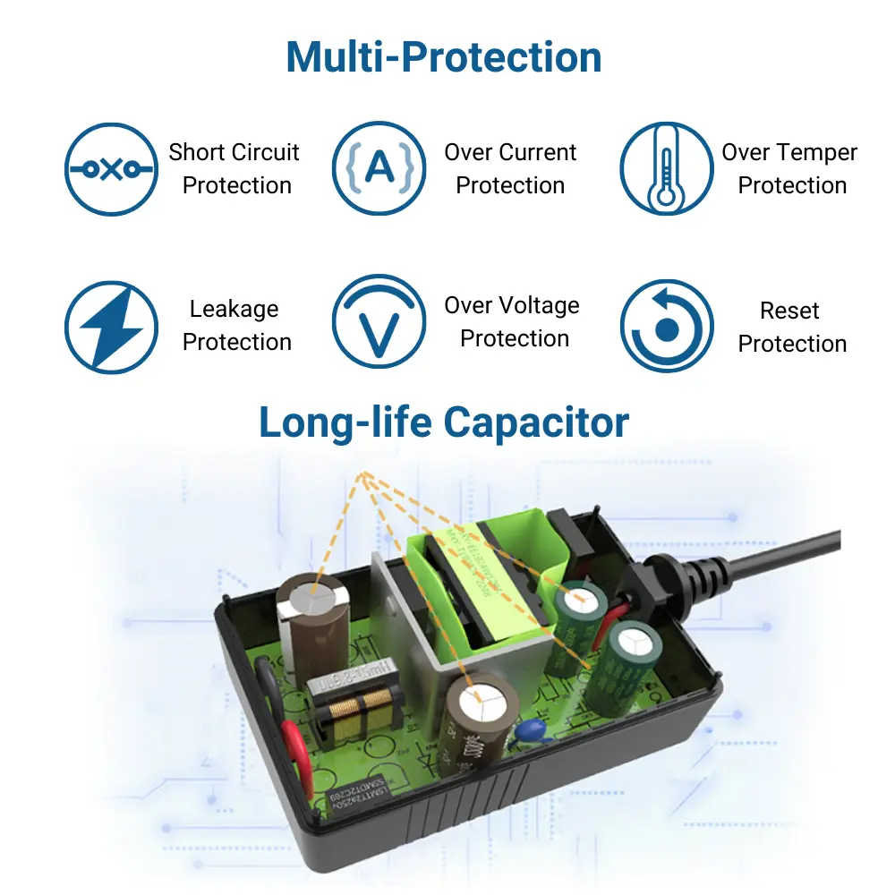 Ο συμπαγής σχεδιασμός plug-in του εξοικονομεί χώρο. Παρέχοντας σταθερό και σταθερό μετασχηματιστή εξόδου 12 W, είναι απόλυτα κατάλληλος για δρομολογητές, διακόπτες δικτύου, ταινίες LED και διάφορες άλλες συσκευές.