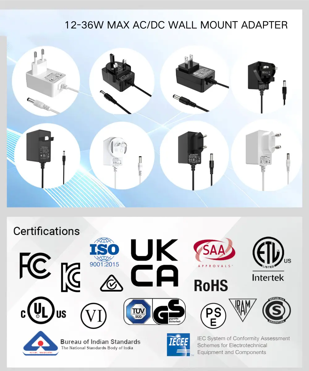 Ο μετασχηματιστής 12V 1A KC από την Shenzhen Starwell Technology Co., Ltd. είναι η αξιόπιστη λύση τροφοδοσίας σας για ένα ευρύ φάσμα ηλεκτρονικών ειδών. Σχεδιασμένο με κορεατικό στάνταρ βύσμα και πλήρη κορεατική πιστοποίηση, εγγυάται την ασφαλή και συμβατή χρήση στη Νότια Κορέα.