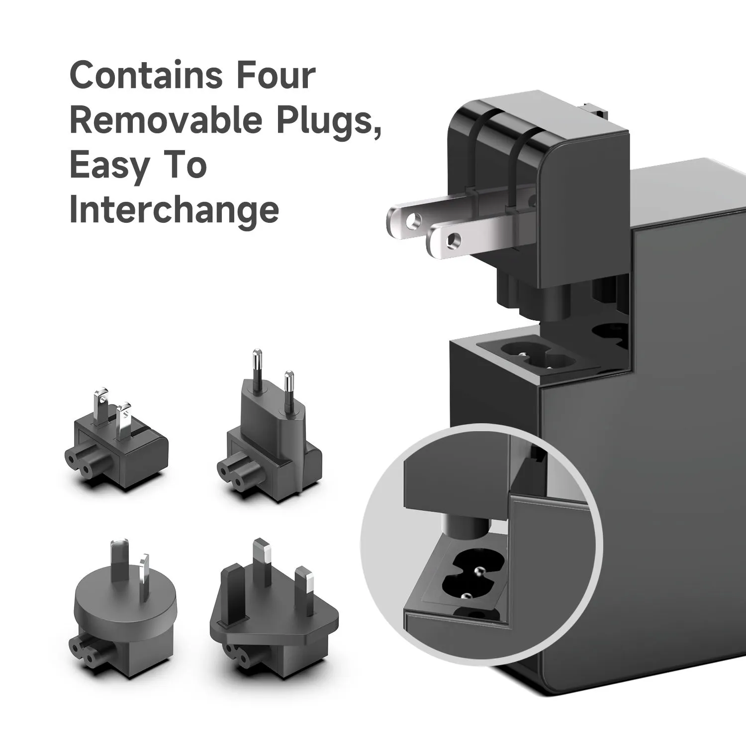 Βύσματα πολλαπλών προτύπων: Ο προσαρμογέας τροφοδοσίας STARWELL είναι εξοπλισμένος με 4 τύπους βυσμάτων κουμπώματος (ΗΠΑ, ΕΕ, ΗΒ και Αυστραλία), δεν χρειάζονται επιπλέον μετατροπείς για διασυνοριακές μετακινήσεις.