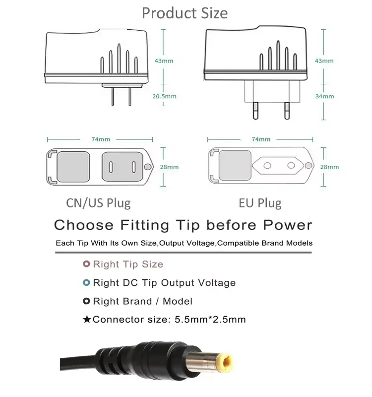 Ο αντάπτορας τροφοδοσίας υψηλής ποιότητας 24 W προσφέρεται από τον κινέζο κατασκευαστή Starwell, αυτός ο προσαρμογέας μας διαθέτει είδη βυσμάτων, όπως βύσματα ΗΠΑ, Ηνωμένου Βασιλείου, ΕΕ και ΑΕ.