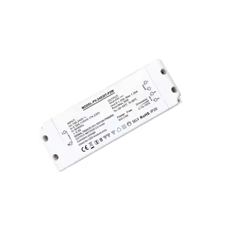 Υψηλής ποιότητας 30W σταθερής τάσης triac dimming led driver προσφέρεται από τον κινεζικό κατασκευαστή Starwell, το οποίο είναι ένα υψηλής απόδοσης, πολλαπλών χρήσεων πρόγραμμα οδήγησης triac dimming LED σταθερής τάσης, ειδικά σχεδιασμένο για συστήματα φωτισμού LED που απαιτούν ακριβή έλεγχο φωτός. Είναι συμβατό τόσο με το παραδοσιακό πρωτοποριακό πρωτόκολλο μείωσης της φωτεινότητας φάσης (Triac) όσο και με τα προηγμένα αναλογικά πρωτόκολλα 0-10V dimming, λειτουργώντας ως 30W Triac 0-10V Dimmable LED Driver, παρέχοντας στους χρήστες ευελιξία εγκατάστασης και προσαρμοστικότητα σκηνής.
