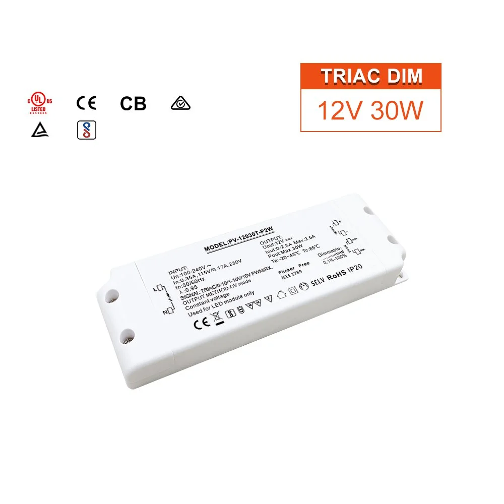 Επαγγελματική λύση dimming: 30W σταθερής τάσης triac/0-10V διπλής λειτουργίας ρυθμιζόμενος οδηγός LED