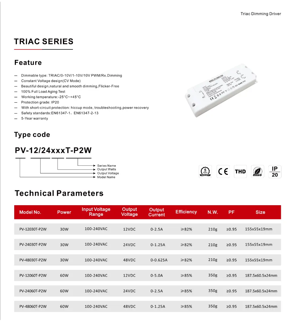 Τροφοδοτικό σταθερής τάσης TRIAC 0-10V με ρυθμιζόμενο ρεύμα 30W, η Starwell προσφέρει 5ετή εγγύηση για μακροπρόθεσμη διασφάλιση ποιότητας. Τα βασικά εξαρτήματά του είναι όλα κατασκευασμένα σύμφωνα με τα βιομηχανικά πρότυπα, με εξαιρετική αντοχή σε υπερτάσεις, αντοχή σε υψηλές θερμοκρασίες και μακροπρόθεσμη λειτουργική αξιοπιστία. Αυτό το πρόγραμμα οδήγησης LED σταθερής τάσης TRIAC dimming 30W, το οποίο ενσωματώνει το dimming διπλής λειτουργίας, την έξοδο σταθερής τάσης, την τεχνολογία χωρίς τρεμόπαιγμα και τη μεγάλη διάρκεια ζωής, είναι μια εξαιρετική επιλογή για όσους αναζητούν εφέ φωτισμού υψηλής ποιότητας. Καλώς ήρθατε να ρωτήσετε.