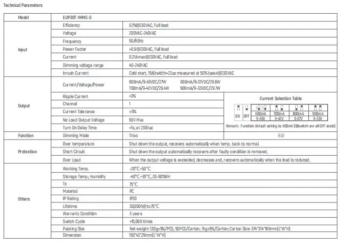 Ως επαγγελματίας κατασκευαστής και προμηθευτής οδηγού led στην Κίνα, το σταθερό ρεύμα οδήγησης 30W Triac dimming LED Driver Constant Current είναι μια συσκευή μετατροπής ισχύος που έχει σχεδιαστεί ειδικά για συστήματα φωτισμού LED μέσης έως υψηλής ισχύος. Υιοθετεί προηγμένη τεχνολογία ελέγχου σταθερού ρεύματος για να εξασφαλίσει σταθερή λειτουργία των σφαιριδίων LED στο ονομαστικό ρεύμα, επεκτείνοντας αποτελεσματικά τη διάρκεια ζωής της λάμπας και βελτιώνοντας τη συνέπεια της απόδοσης φωτός. Ο οδηγός led συνεχούς έντασης είναι κατάλληλος για σενάρια φωτισμού υψηλής ζήτησης, όπως εμπορικός φωτισμός, βιομηχανικός φωτισμός, προβολείς εξωτερικού χώρου και φώτα ανάπτυξης φυτών.