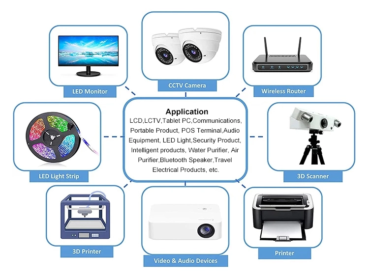 * Περισσότερες μονάδες για τη σειρά 48W: 5V/9V/12V/15V/19V/24V/36V/48V διαθέσιμα * Ασφάλεια: OCP/OVP/OTP, SCP, αυτόματη διακοπή υπερφόρτωσης, διακοπή τάσης υπέρβασης, αυτόματη θερμική διακοπή. * Ευρεία συμβατότητα: LED Strip Lights, 3D Printer, ham radio πομποδέκτης, κάμερες CCTV, ενισχυτής subwoofer αυτοκινήτου, ενισχυτής ήχου, ασύρματος δρομολογητής, ADSL Cats, Humidifier, HUB, Keyboard, BT Speaker, Monitor, Webcam, DVR, NVR, τροφοδοσία ήχου/βίντεο