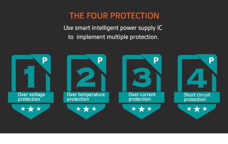 Προστασία από υπερβολική θερμοκρασία, υπερφόρτιση, υπέρταση, υπερβολικό ρεύμα, προστασία από βραχυκύκλωμα |
