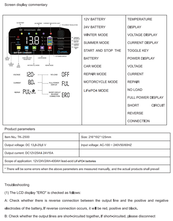 Φιλική προς το χρήστη διεπαφή: Μια καθαρή, φωτεινή οθόνη LED υποδεικνύει διαισθητικά την κατάσταση φόρτισης, την υγεία της μπαταρίας και τυχόν πιθανά σφάλματα, δίνοντάς σας τον απόλυτο έλεγχο.