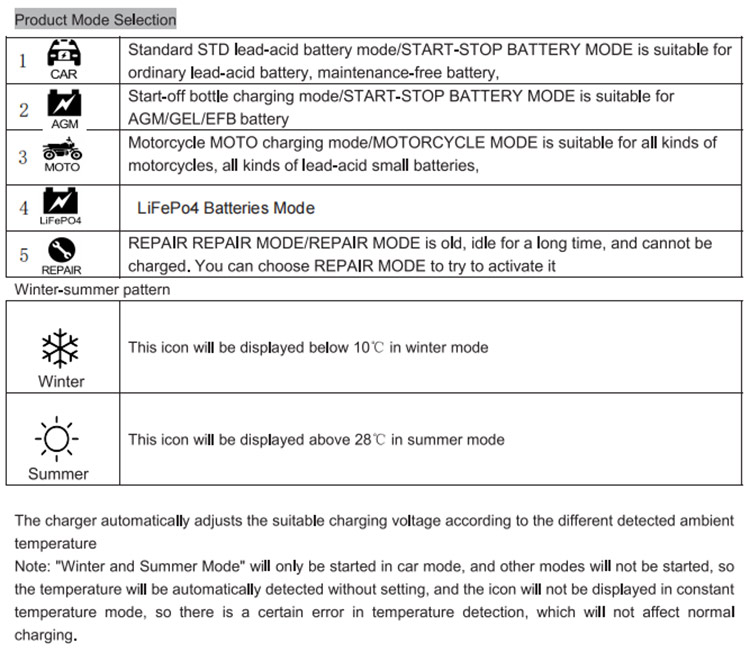 Υποστήριξη τύπου ευρείας μπαταρίας: Συμβατό με διάφορες χημικές μπαταρίες, συμπεριλαμβανομένων των μπαταριών Standard Flooded (Wet), AGM (Absorbent Glass Mat), Gel και ασβεστίου, εξασφαλίζοντας βέλτιστη φόρτιση για κάθε συγκεκριμένο τύπο.