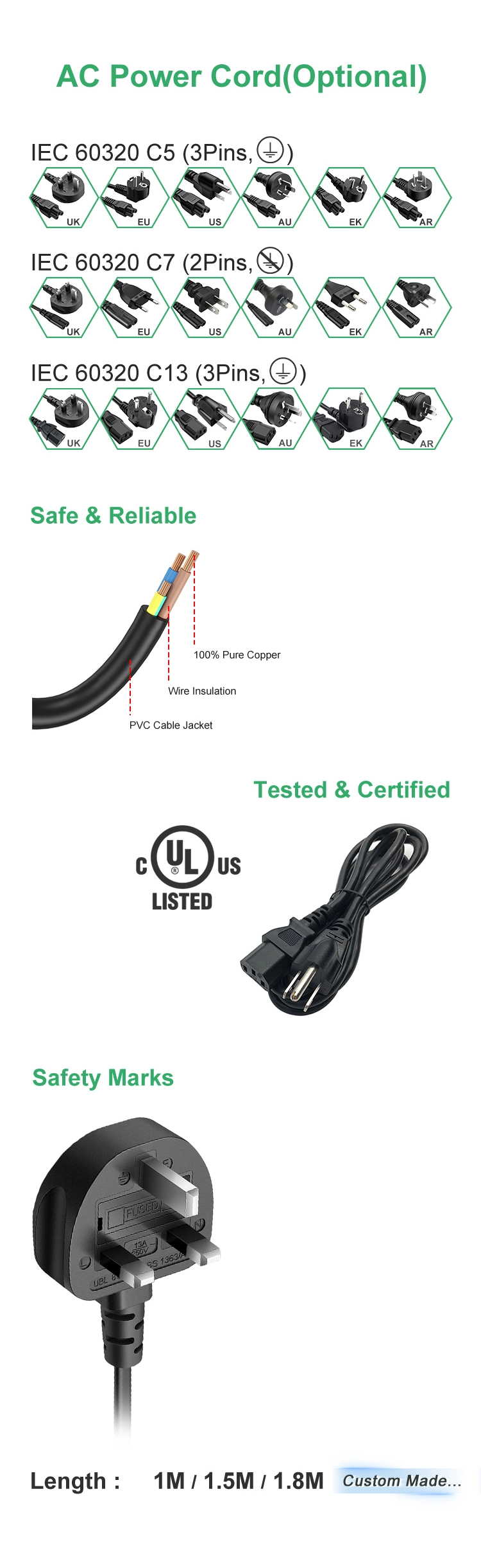 * Περισσότερες μονάδες για σειρά 200W: 5V/8V/9V/12V/13,5V/15V/18V/19V/24V/25V/30V/36V/29V/30V/42V/48V διαθέσιμες * Ασφάλεια: OCP/OVP/OTP, SCP, αυτόματη διακοπή υπερφόρτωσης, διακοπή τάσης υπέρβασης, αυτόματη θερμική διακοπή. * Ευρεία συμβατότητα: LED Strip Lights, 3D Printer, ham radio πομποδέκτης, κάμερες CCTV, ενισχυτής subwoofer αυτοκινήτου, ενισχυτής ήχου, ασύρματος δρομολογητής, ADSL Cats, Humidifier, HUB, Keyboard, BT Speaker, Monitor, Webcam, DVR, NVR, τροφοδοσία ήχου/βίντεο