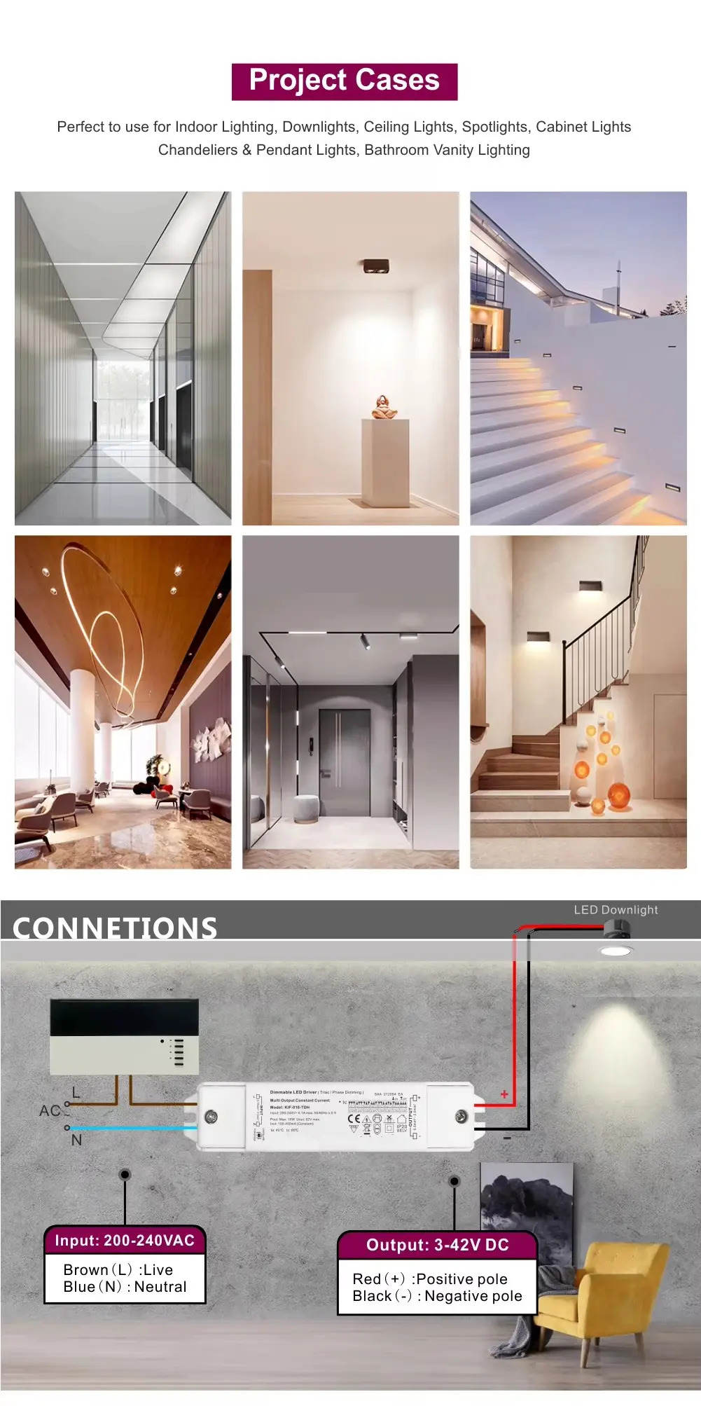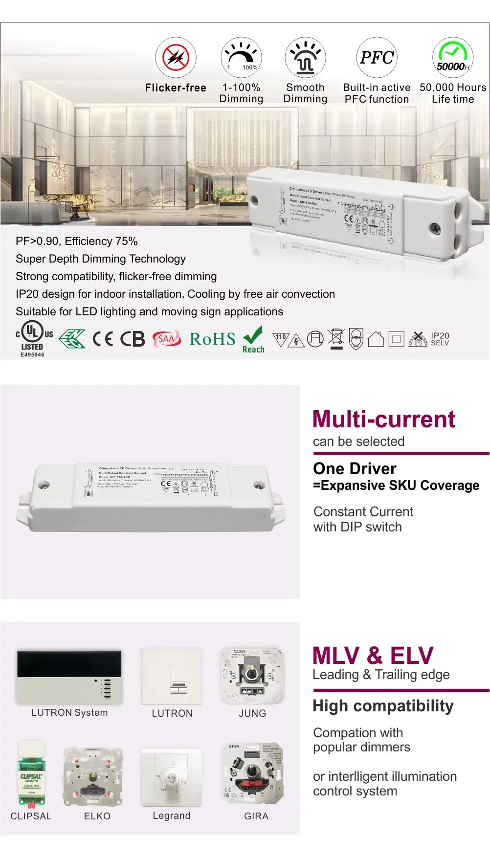 Σταθερό και προστατευτικό σταθερό ρεύμα: Διατηρεί μια ακριβή, σταθερή έξοδο ρεύματος στις μονάδες LED σας, διασφαλίζοντας σταθερή φωτεινότητα, ομοιομορφία χρώματος και εκτεταμένη διάρκεια ζωής LED προστατεύοντας από τις τρέχουσες διακυμάνσεις και υπερτάσεις.