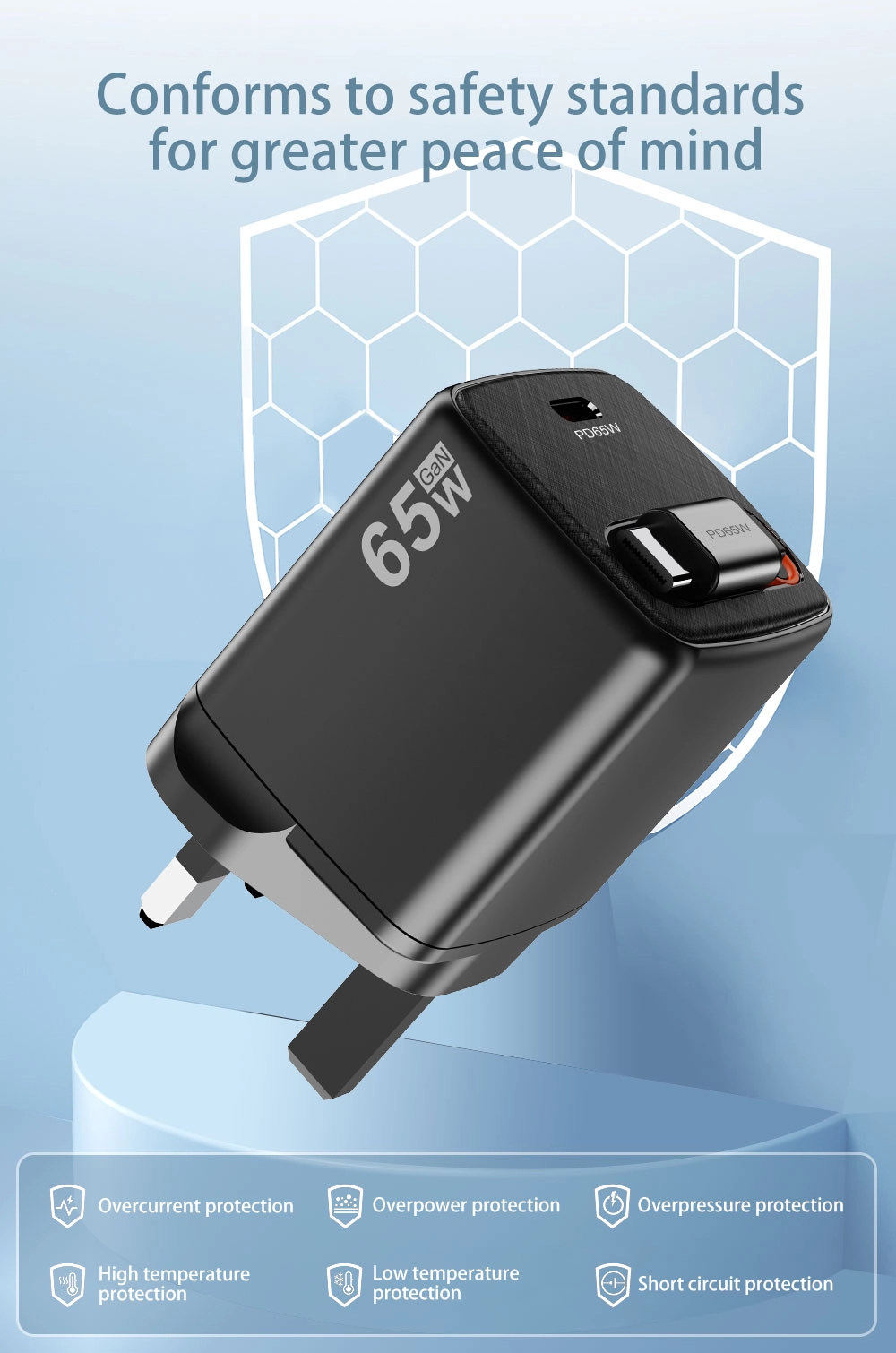 Γρήγορος φορτιστής τύπου βύσματος ΗΒ 65w Προδιαγραφές: